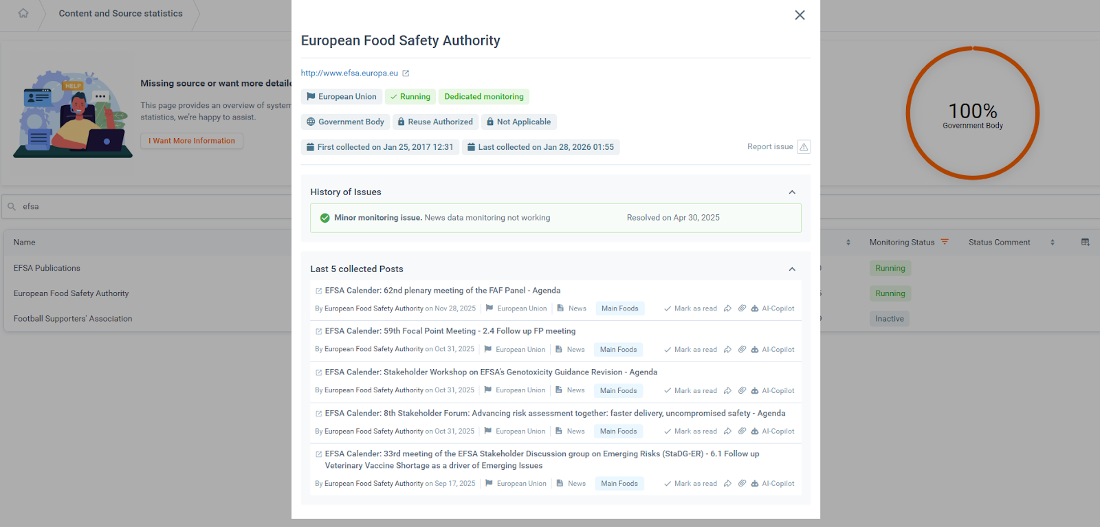 Transparency is key to trust. The Content and Source Statistics widget provides a complete window into the thousands of sources Digicomply monitors. It allows you to verify coverage, check the "health" of specific sources, and troubleshoot if you suspect data is missing.