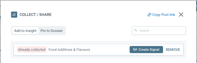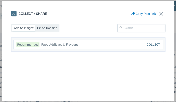 When the correct Insight is found, click COLLECT and the post will be added to the list of posts of your Insight. The collected post will be then displayed with tag Already collected.