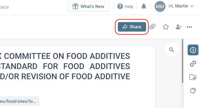 Click on the share icon and open a dialog box