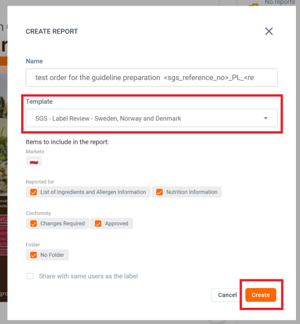 If your team requires a specific terms & conditions within your report, make sure you select template which is applicable to your market. Then press Create.