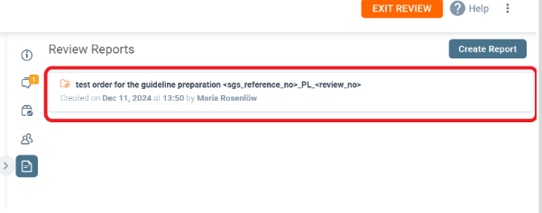 After that, the generation of the report starts. This usually takes several seconds. You will see a new item in the list of review reports when it is ready. Click on the name of the report and you will be relocated to a new page.