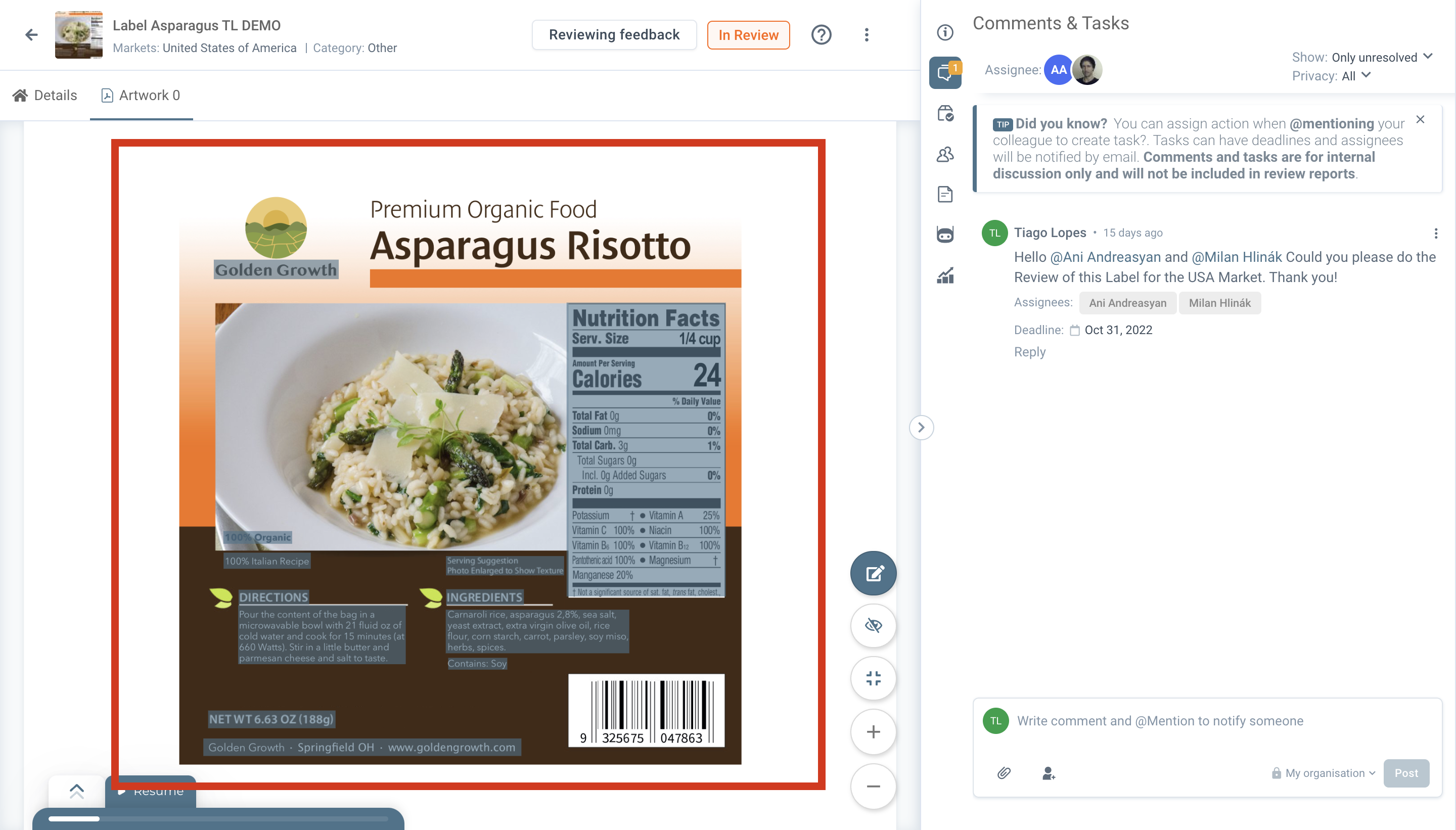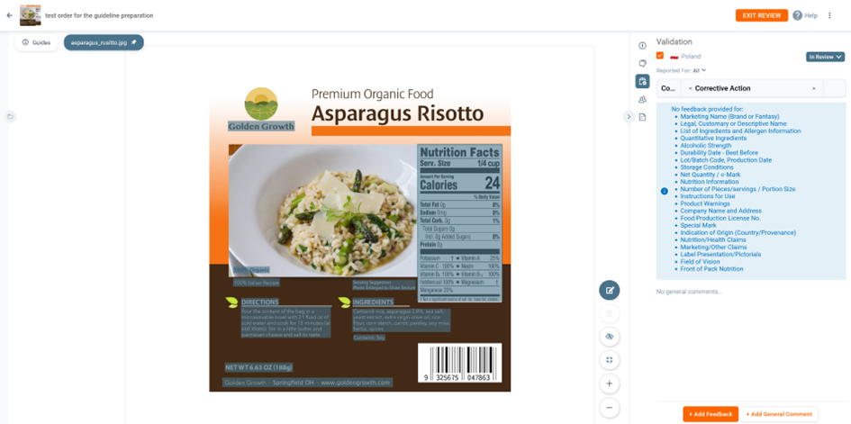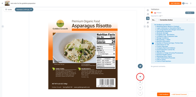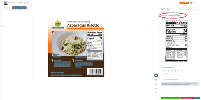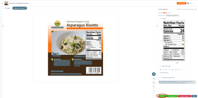 Now that we have all the elements in the artwork visible, we can start reviewing. For the purpose of this document, we will only review the Nutrition Information and List of ingredients and Allergen Information.