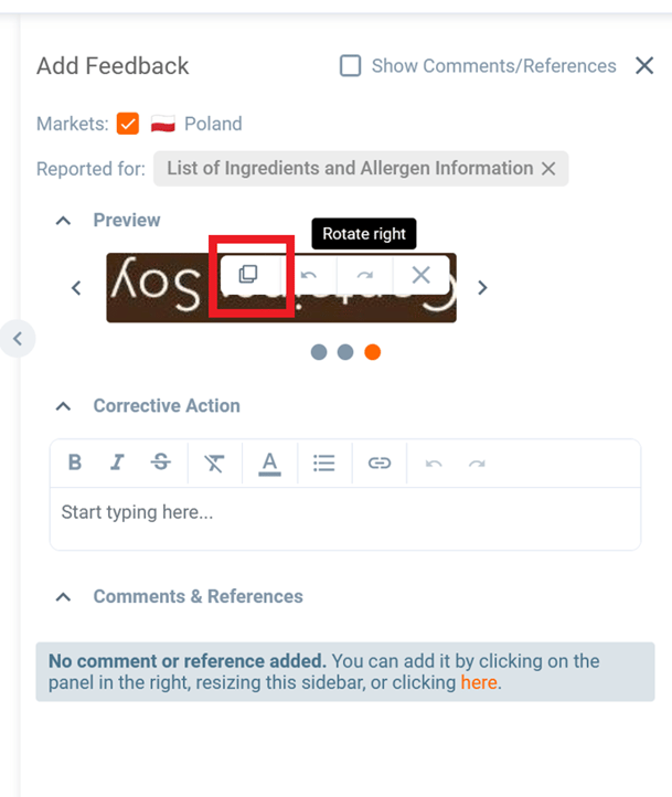 TIP - Remember how you could hover over the pictures and rotate them? There is yet another function that can be used when hovering in this mode. By pressing the symbol to the left, you can copy the text from the picture you are hovering over. An easy way to extract long texts such as ingredient lists.