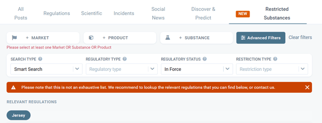 You can also consult one of the relevant Regulatory documents shown under the table of restrictions matching your search parameters.