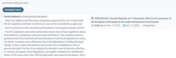 Tip: You can also select trade blocs or organizations like European Union, Codex Alimentarius, or Mercosur.