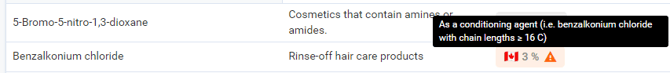 Exclamation Mark (!): Indicates there is a specific condition or note that further specifies the limit (e.g., "As a conditioning agent...").