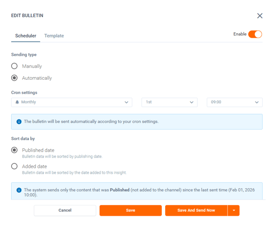 Note: The system will skip sending a bulletin if no new content has been added to the Insight since the last email was sent.