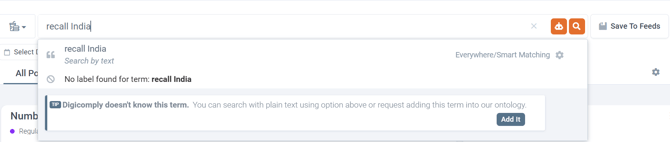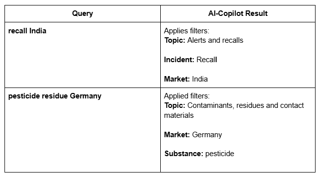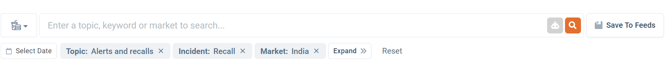 For example, if you enter “recall India” and click the AI-Copilot button, Digicomply will automatically apply the following filters: