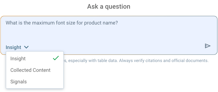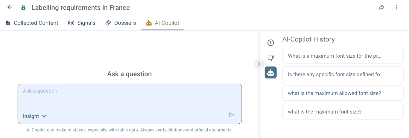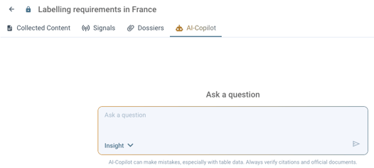 Insight - the AI-Copilot will search for information in the Collected Content and Signals