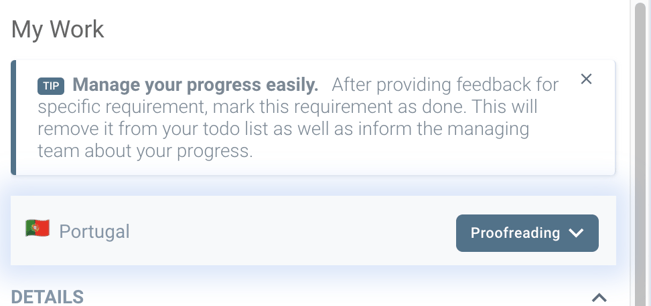 So first things first, as we can see here we have Portugal set as a "Proofreading" state, meaning if your team does proofreading previous to the "Plausibility check", now is the time to do it.