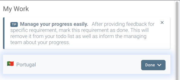 Here it is, so let's change the Status Market to Done, by doing this means that we have confirmed that everything is correct with the Portugues Market Review and that the review work for that market is indeed finalized.