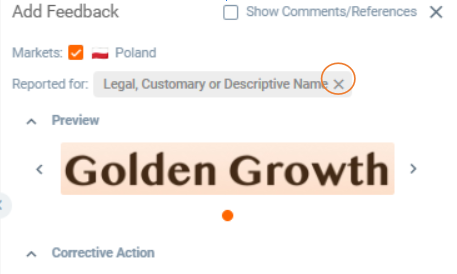 - Click on the element and in the preview click on the “x”. This will remove the selected section from the Add Feedback.